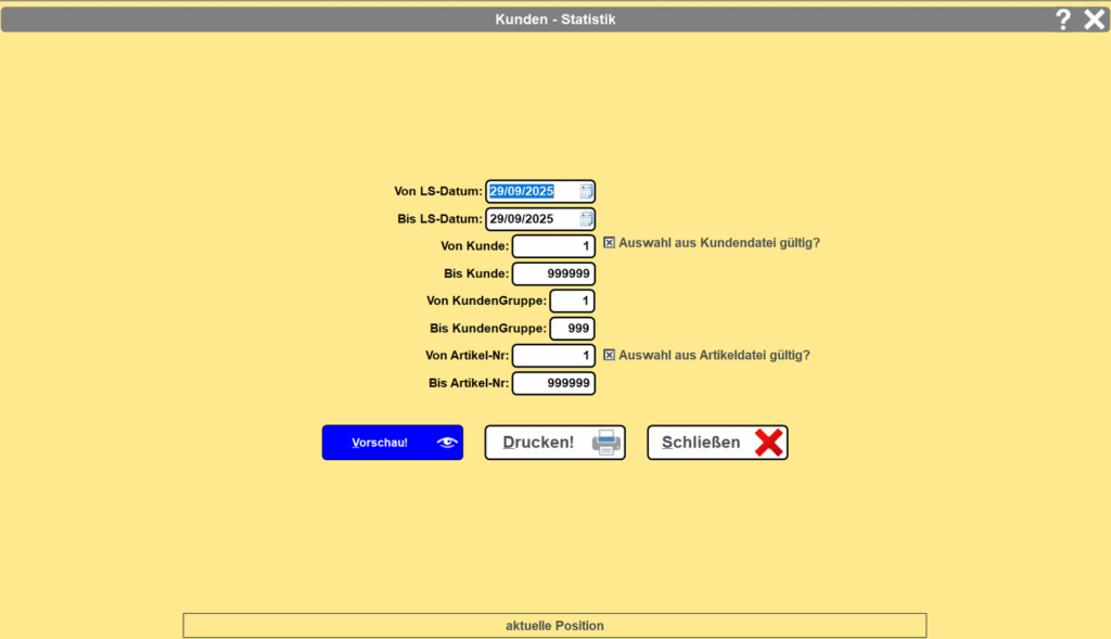 legen die auf der Statistik anzudruckenden Kunden fest. Kunden außerhalb dieses Bereich werden nicht berücksichtigt.