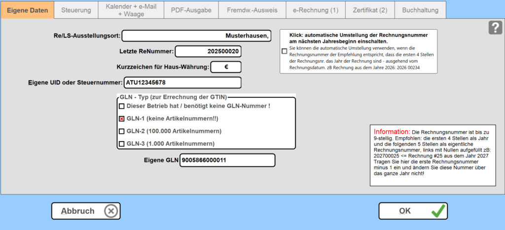Information zu den Rechnungsnummern